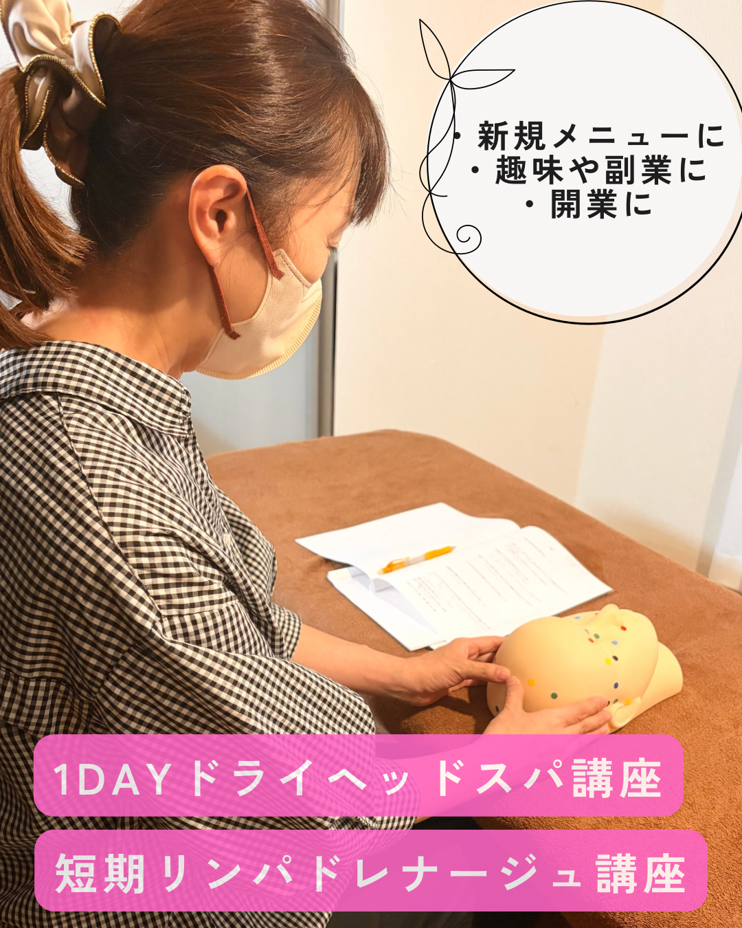 あなたも、1日でドライヘッドスパを習得できます。